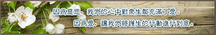 当我们每天将一元投入护生罐中时,在那一刻我们的心无比 的慈悲,而我们的一天也在这样的慈悲中度过。在这一天天 中,我们不断修持着自己的慈悲心,菩提心。我们用这个行 动来提醒自己爱护一切众生,来自省自己的不足,来培养自 己的大爱。